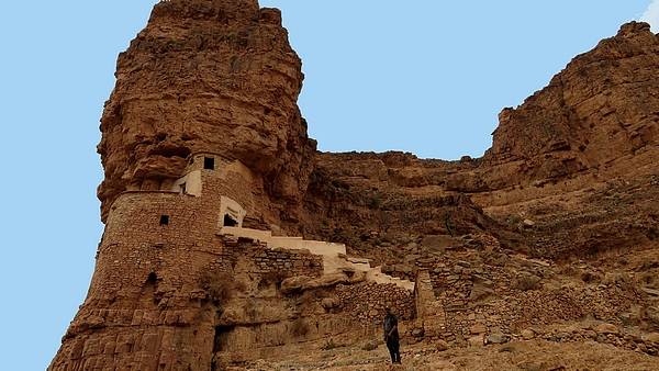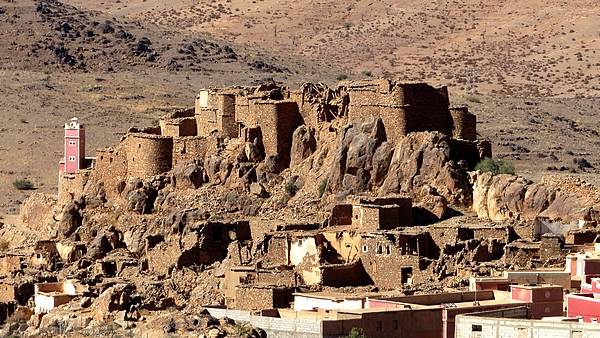 | Aufmerksame Betrachter entdecken nahe der R 105 ein uraltes, inzwischen verlassenes Berberdorf auf einem Felssporn das manchmal (wahrscheinlich fälschlicherweise) als Tioulit bezeichnet wird. |