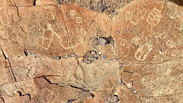 | Außergewöhnliche Felsgravuren finden sich um den Jbel Oukas, im Flussbett des Oued Tamanart. Hier ist es sinnvoll, für einen Besuch viel Zeit einzuplanen |