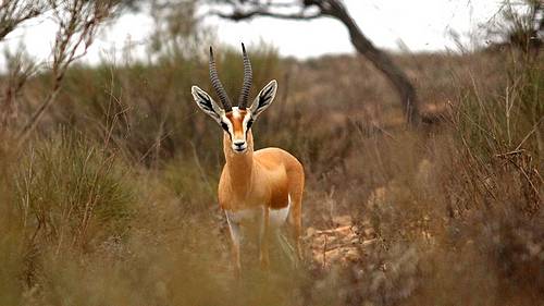 | Mit etwas Glück begegnet man besonders in der Morgen- und Abenddämmerung im Umland den flinken Gazellen und kann sie bei der Futtersuche beobachten.. |