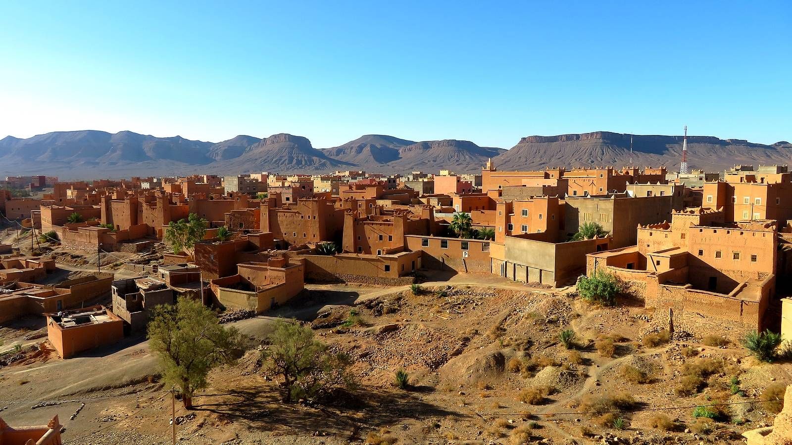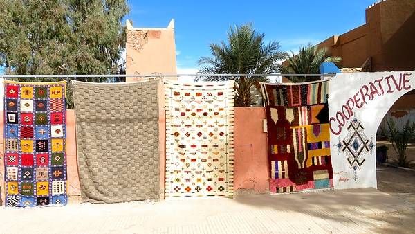 Der Ort selber liegt beschaulich auf einer Hochebene und bietet allein schon viele Möglichkeiten zum Erkunden. Kleine Gassen münden auf verschiedene Plätze mit den unterschiedlichsten Einkaufsmöglichkeiten. Besonders interessant sind die hier gefertigten speziellen farbigen Lederschuhe (Babouchen) aus Ziegenleder, sowie die von den Frauen in Kooperativen hergestellten unterschiedlichen Produkte aus den Früchten des Arganbaumes.