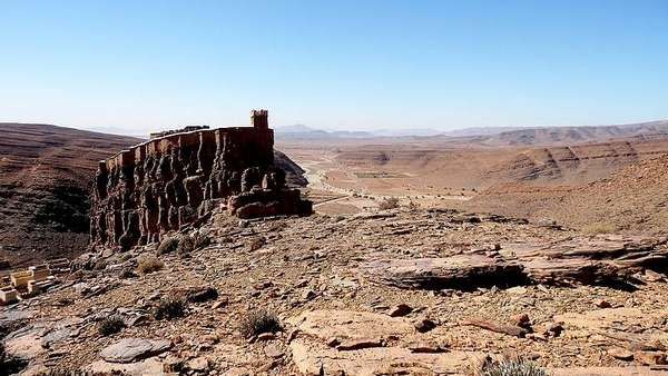 | Das Ammelntal, von Tafraoute ein Katzensprung entfernt, lohnt einen ausgedehnten Besuch. Hier stammt der Schriftsteller Mohammed Khaïr-Eddine her, hier handeln seine Erzählungen. In seinem Geburtsort Tandaft nahe Azerouadou, einem alten, winzig kleinen Berberdorf, wurde eine Gedenkstätte mit tollem Aussichtspunkt über weite Teile des Tals geschaffen |